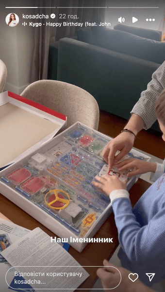 Також Катя Осадча показала подарунки середнього сина та написала: "Наш іменинник".