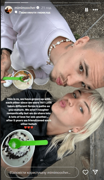 "Це Ро, ми виросли один з одним з 16 років!!! У міру дорослішання любов набуває різних форм і шляхів. У романтичному плані ми не більш жорсткі, але у нас дуже багато любові один до одного... через 5 років ми стали друзями", — йдеться в публікації.