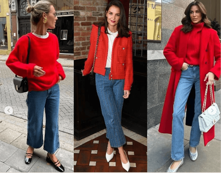 Червоний і денім — це чудове поєднання кольорів у одязі! Червоний може надати одягу витонченості та яскравості, тоді як денім додасть йому спокусливого стилю і стійкості. Можна поєднувати червоні елементи одягу з денімовими штанами або спідницями, або навпаки — денімовий верх і червоні штани чи спідницю.