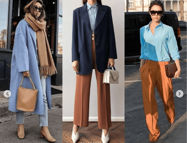 Синій (блакитний) і коричневий — універсальна поєднання кольорів у моді. Вони створюють елегантний і гармонійний образ. Наприклад, можна поєднувати синю блузу з коричневими штанами або спідницею. Такий комбінований наряд виглядатиме стильно та дорого. Також можна доповнити образ синьо-блакитними аксесуарами, такими як сумка або взуття, у поєднанні з коричневими елементами одягу.