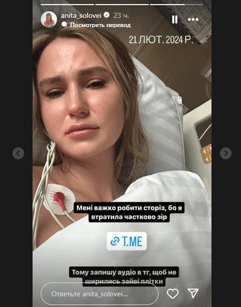 Аніта Соловей наголосила, що досі не розуміє, чому це трапилося з нею, адже вона не хвилювалася, була виспаною, веде здоровий спосіб життя, не п’є, не вживає спиртні напої, чи інші шкідливі речовини. Зараз блогерка хоче направити свої сили, щоб з’ясувати, що все ж призвело до хвороби.