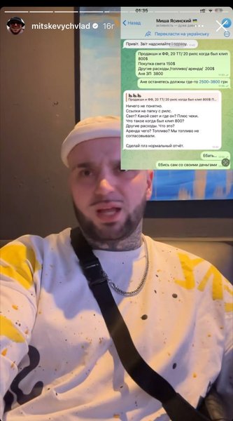 "Хочу відреагувати на коментарі Міши Ясинського. Скажу вам наступне, розійшлись ми приблизно так (скрін повідомлень). Я не скидав йому дійсно ніякі таблички, тому що він може скинути переписку далі і ви зрозумієте чому. Але він цього ніколи не зробить, тому що він сам себе поховає. Далі стосовно невдалого піар-ходу і всього іншого. Кліпу ще немає, це по-перше. По-друге, така ситуація склалася, у Олі нещодавно з’явився новий кліп і там 15 тисяч переглядів. Міш, займайся краще своїми ділами, не треба, в тебе немає ні аргументів, немає ніяких доказів, немає зовсім нічого. Ти сам собі риєш яму, і риєш яму своїх артистів. Чи працюй, чи просто геть з цього поля і не займайся, тим чим ти займаєшся, освоюю бюджет. Гарного тобі дня, друже. Тримайся. Чи працюй", — сказав Міцкевич.