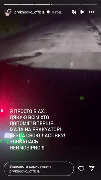 "Вперше їхала на евакуаторі і везла свою ластівку", — зазначила співачка.