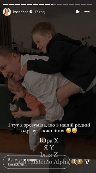 "І тут я зрозуміла, що у нашій родині одразу 4 покоління. Юра – X, Я – Y, Ілля – Z, Іван і Данило – Alpha", — написала зірка екрану.