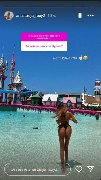 На пряме місце запитання, чи вийшла вона заміж за Мурата, Анастасія відповіла: "Ні, звичайно (ред. емодзі зі сміхом до сліз)".