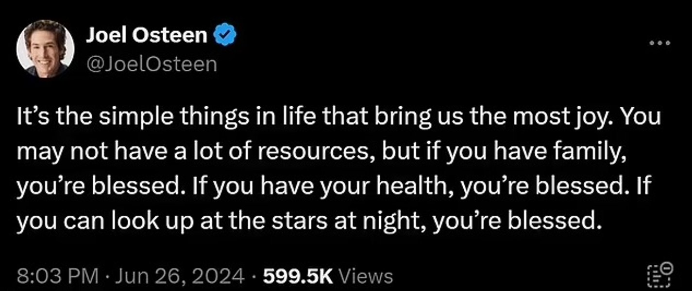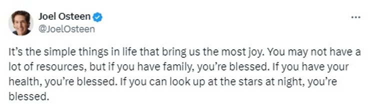 "Джоел Остін: "Це прості речі в житті", — написав він.
