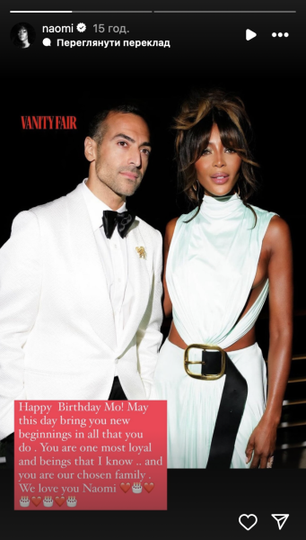 "З днем народження, Мо! Нехай цей день принесе тобі нові починання у всьому, що ти робиш. Ти один з найвідданіших, кого я знаю… І ти наша обрана сім'я. Ми любимо тебе, Наомі", — написала британська знаменитість, показавши знімок з кінопродюсером.
