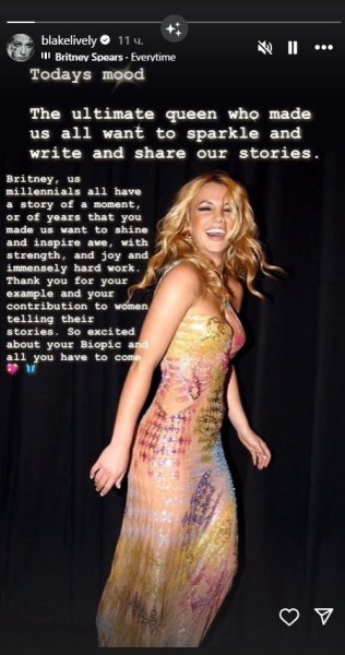 Лайвлі також поділилася приємним посланням для Брітні у своїх Instagram Stories.