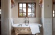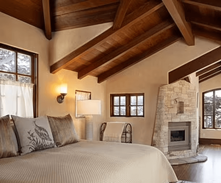 У будинку склепінчасті стелі з відкритими дерев'яними балками, зовнішнє оздоблення з каменю і вікна з червоного дерева. Зовні є доглянутий внутрішній двір із місцем для багаття.