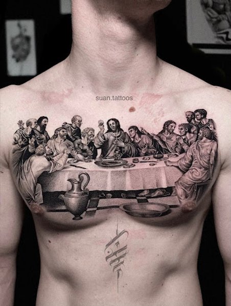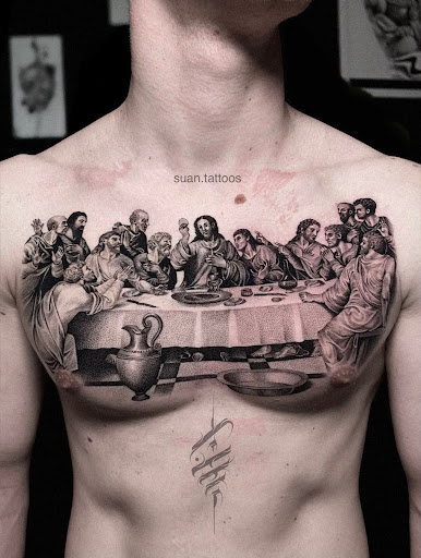 До речі, на другий день фестивалю В'ячеслав Данг знову здобув нагороду – у категорії "Загоєне тату в чорно-білому реалізмі". Його не менш масштабний проєкт "Таємна вечеря" за мотивами монументального розпису Леонардо да Вінчі, що витатуйований на грудях у тій самій техніці віпшейдинг, отримав ІІІ місце та схвалення міжнародного кваліфікованого журі.