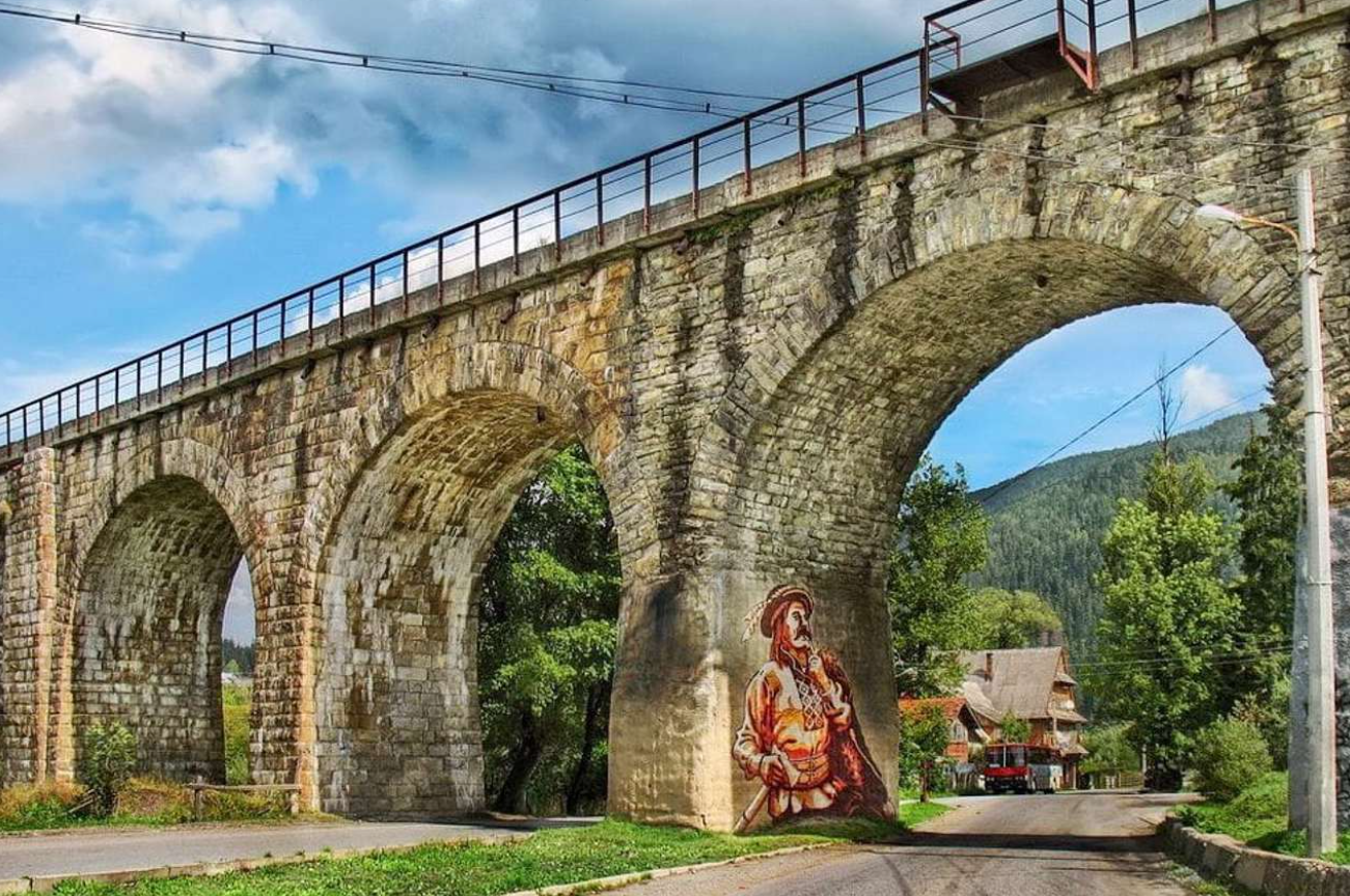 Найбільше туристам запам’ятовуються кам’яні віадуки, один з них — із графіті гуцулів, одягнених у традиційне вбрання. Це кам'яні мости з арками, побудовані ще за часів Австро-Угорщини.