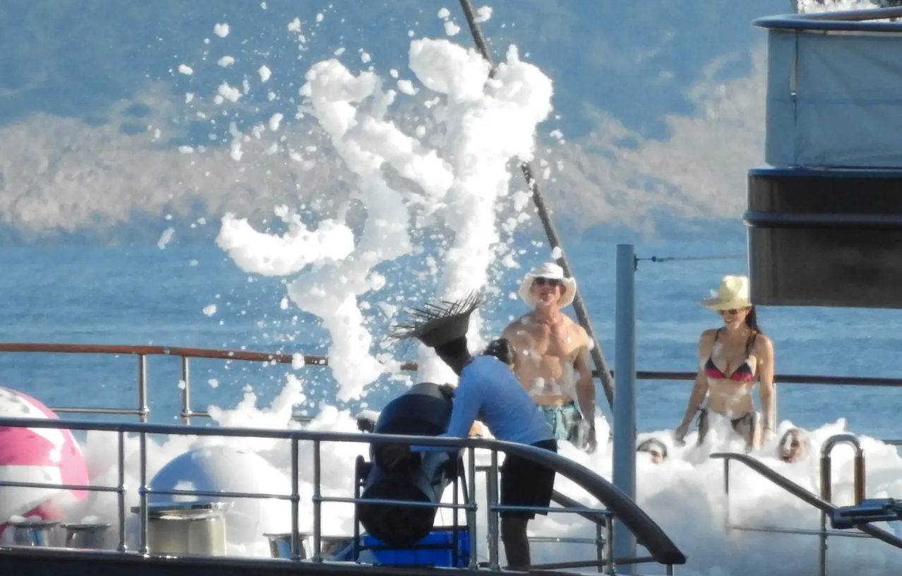 Гості насолоджувалися активним відпочинком на яхті, зокрема грали в гольф з палуби прямо в море. Санчес фотографувала Безоса на свій телефон, поки той веселився у піні. Еван, своєю чергою, "зависав" разом із друзями, насолоджуючись усіма перевагами суперяхти мільярдера.