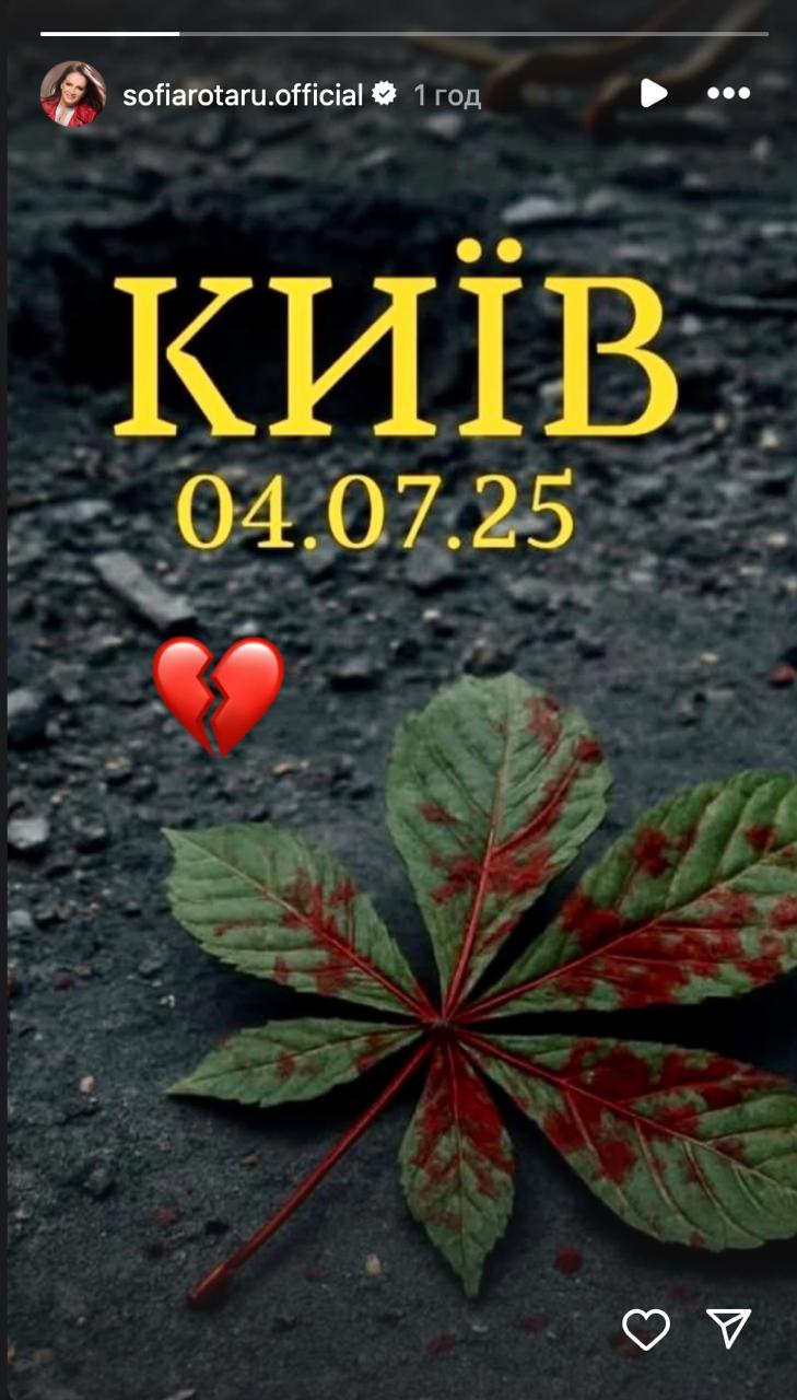 "Київ. 04.07.25", — йшлося в публікації народної артистки України.