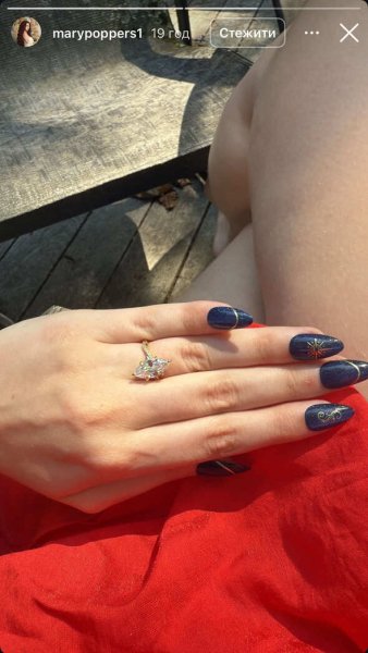 На сторінці в Instagram Марія опублікувала фото каблучки з заручин. Дівчина носить її на лівій руці.