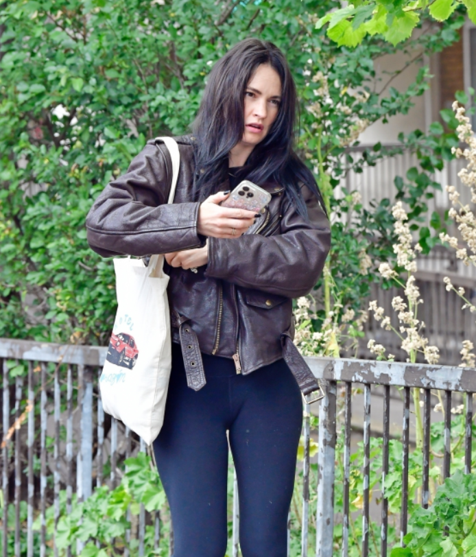 Під час прогулянки Лілі Джеймс була одягнена в шкіряну куртку та сині легінси, доповнивши образ сандалями Birkenstock та сумкою через плече. Свій стиль зірка підкреслила чорним манікюром.