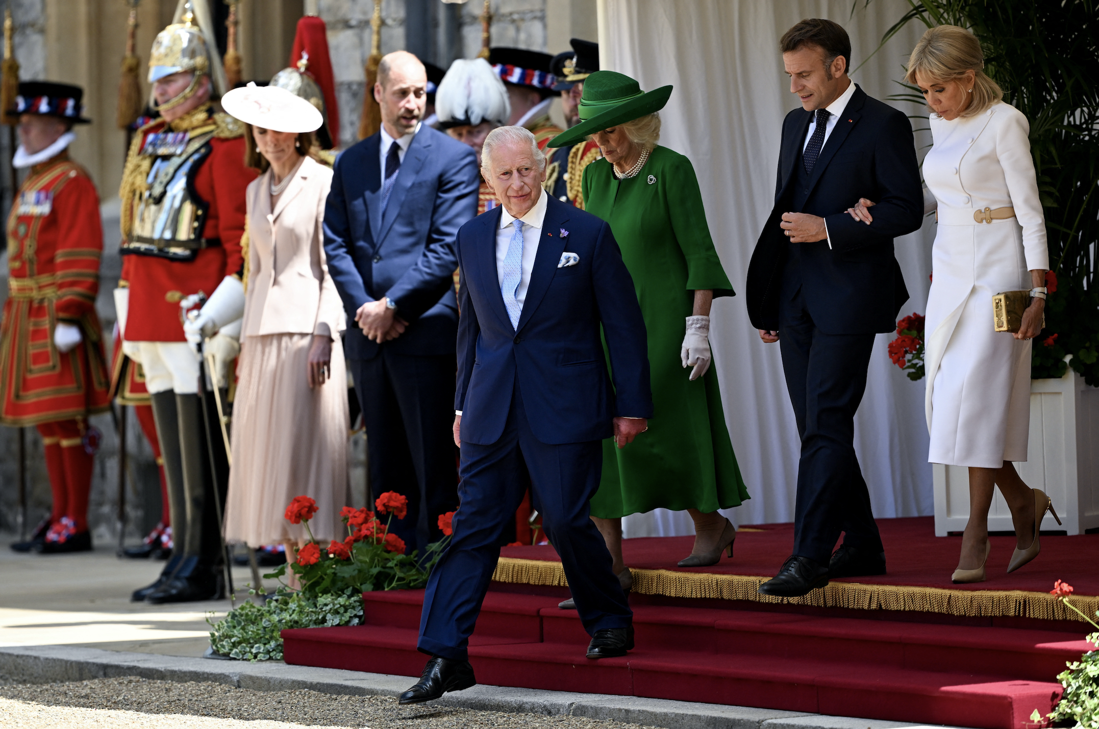 Після прибуття до Віндзора король Чарльз ІІІ і королева Камілла офіційно привітали пару з Франції, а також пролунав королівський салют у Домашньому парку у Віндзорі та в Лондонському Тауері.