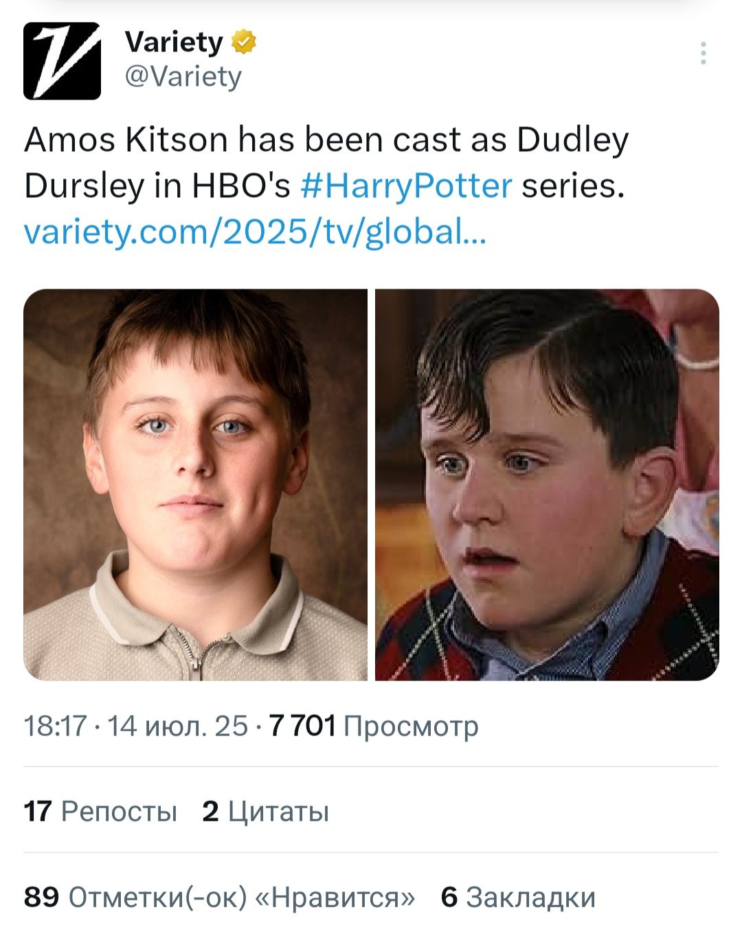 Так виглядає Дадлі Дурсль у серіалі. Його грає Амос Кітсон.