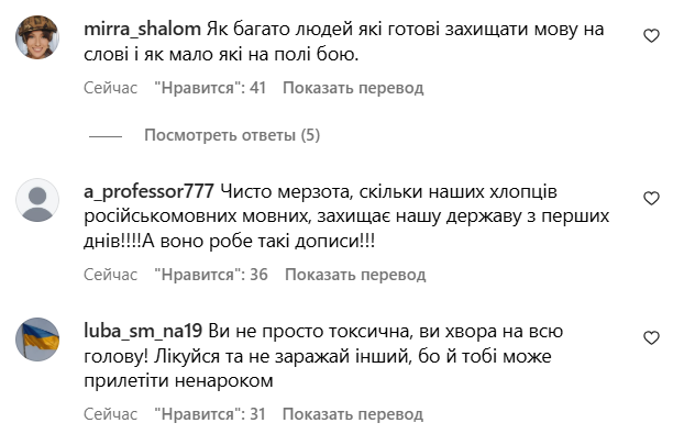 Інші користувачі зазначили, що в лавах ЗСУ воюють із ворогом безліч російськомовних солдатів із перших днів повномасштабної війни. Однак більшість підписників підтримали погляди Мандзюк.