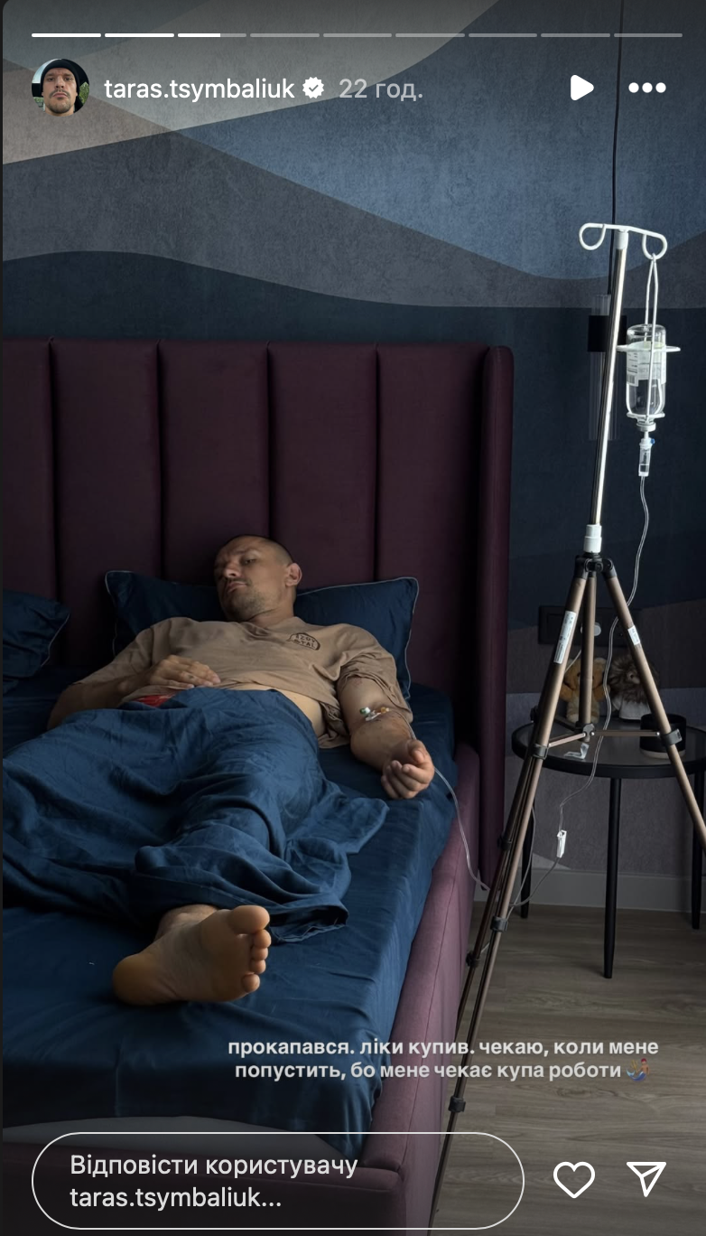 "Прокапався. Ліки купив. Чекаю, коли мене попустить, бо мене чекає купа роботи", — зазначив Тарас.