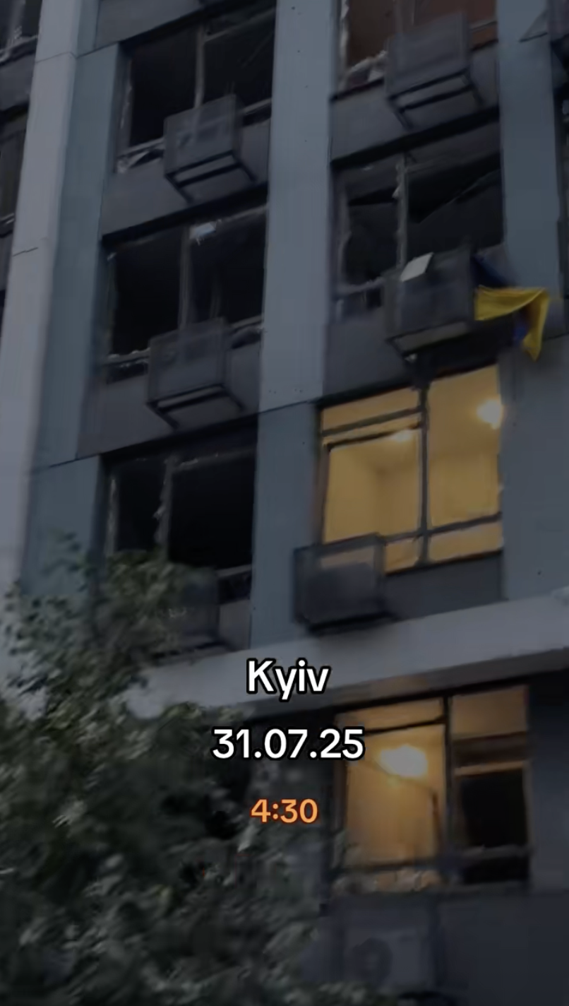Під час масованої атаки на Київ постраждав будинок у Святошинському районі, у якому проживає відома блогерка Русалочка Хл. Про це вона розповіла підписникам у соцмережах.