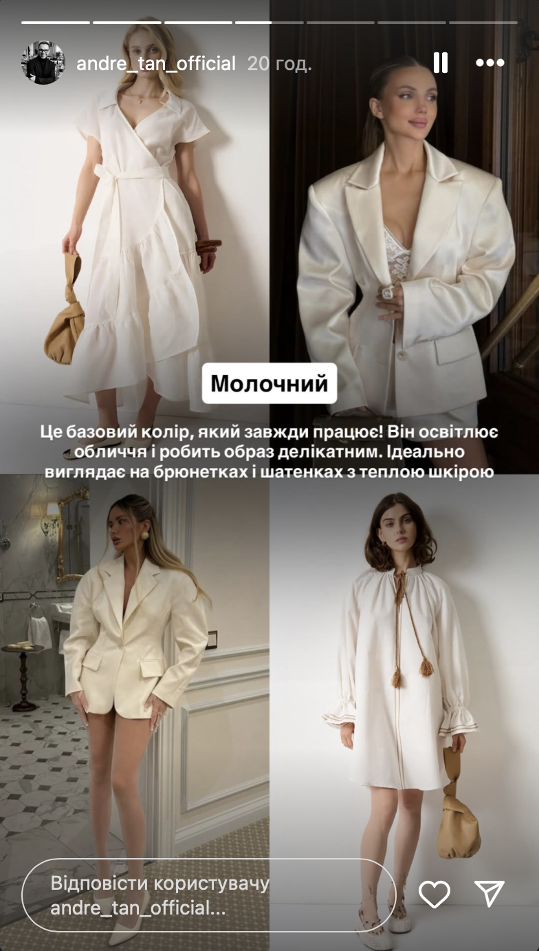 "Дивись це рілс, щоб дізнатись які саме відтінки додають шкірі сяйва та роблять погляд яскравішим", — написав дизайнер.