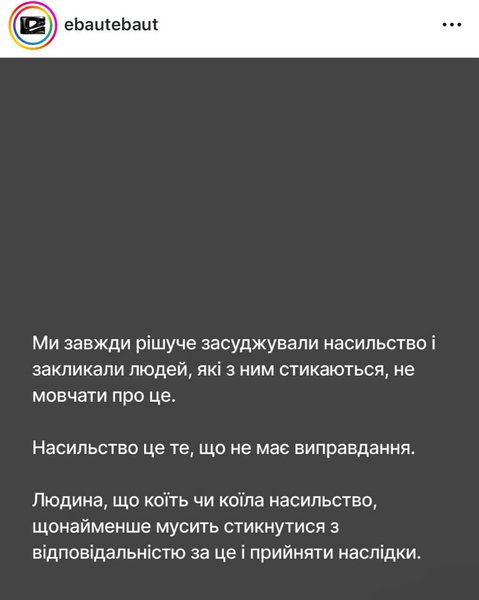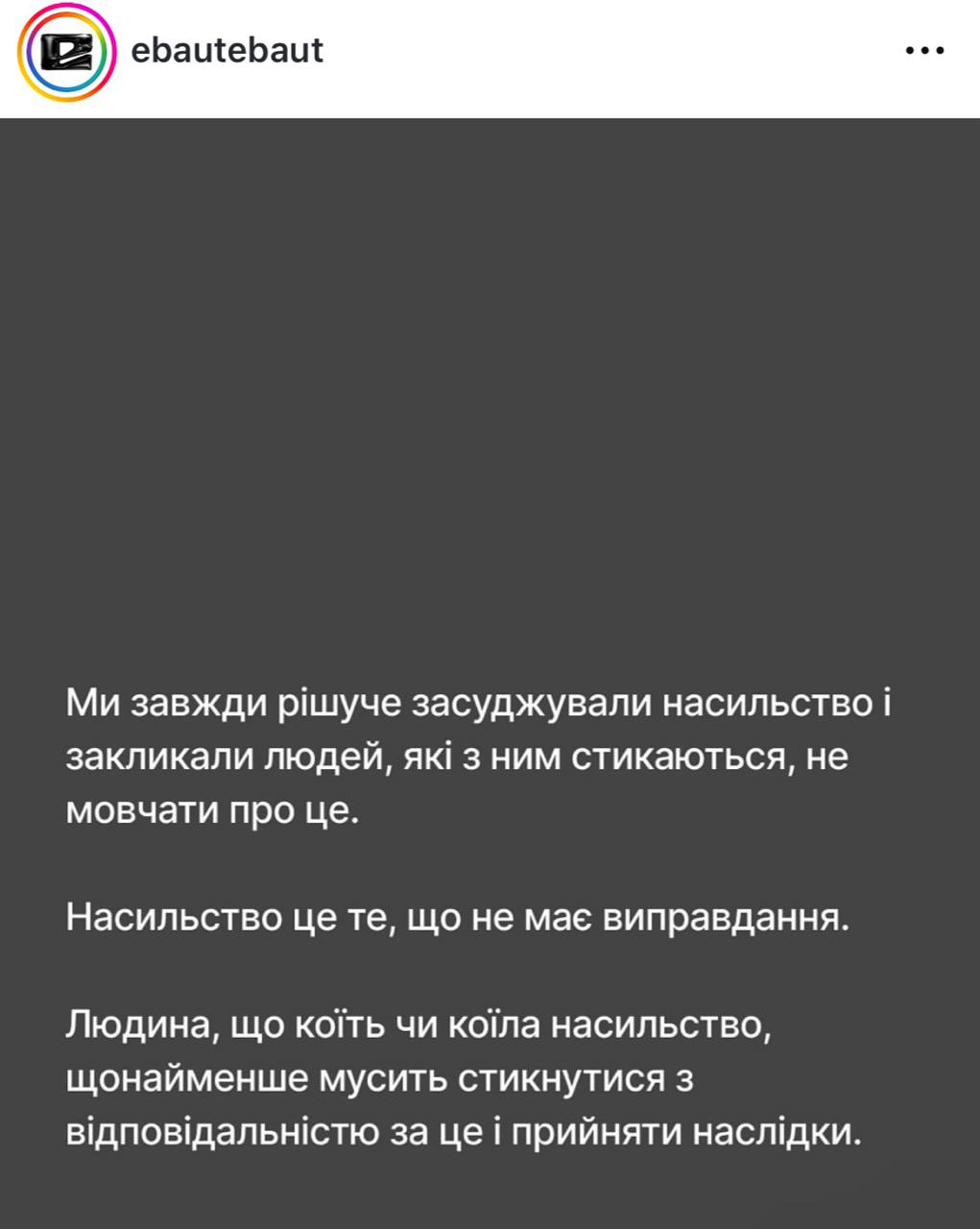 Шоу "Ебаут" і його співзасновниця Катерина Мотрич, які працювали з Темляком, рішуче засудили насильство.
