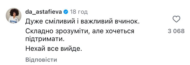 Багато акторів, співаків і блогерів відреагували на те, що відбувається навколо Костянтина Темляка, підтримавши Анастасію Соловйову. Наприклад, співачка Даша Астаф'єва вважає розповідь Соловйової дуже сміливим і важливим вчинком.