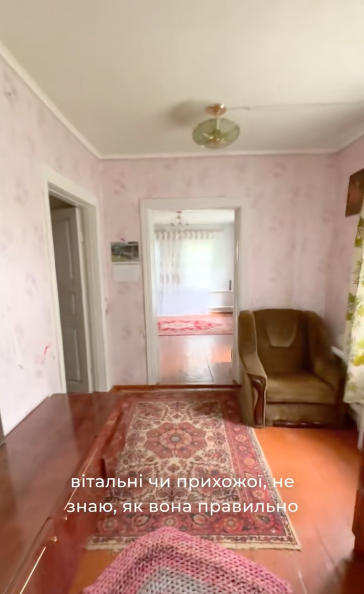 "Ми купили будинок в селі біля Черкас. І нарешті у мене дійшли руки до рум-туру. Починаємо ми з коридору, потім переходимо до вітальні чи прихожої, я не знаю, як вона правильно називається", — каже нова власниця нерухомості.