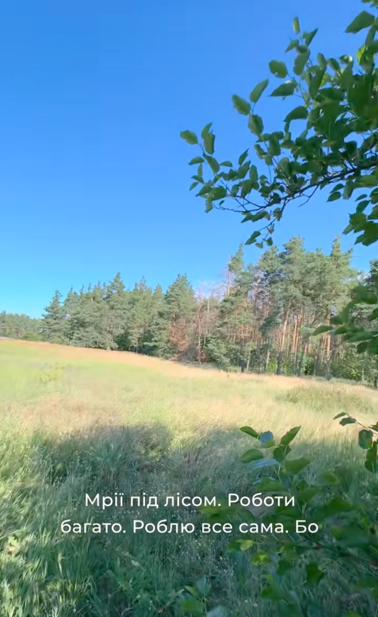 "Рум-тур по дворі я робити не буду. Усе, що потрібно знати: це в мене є город мрії під лісом. Роботи багато. Роблю все сама. Бо діти і коти поки морально підтримують", — каже авторка відео.