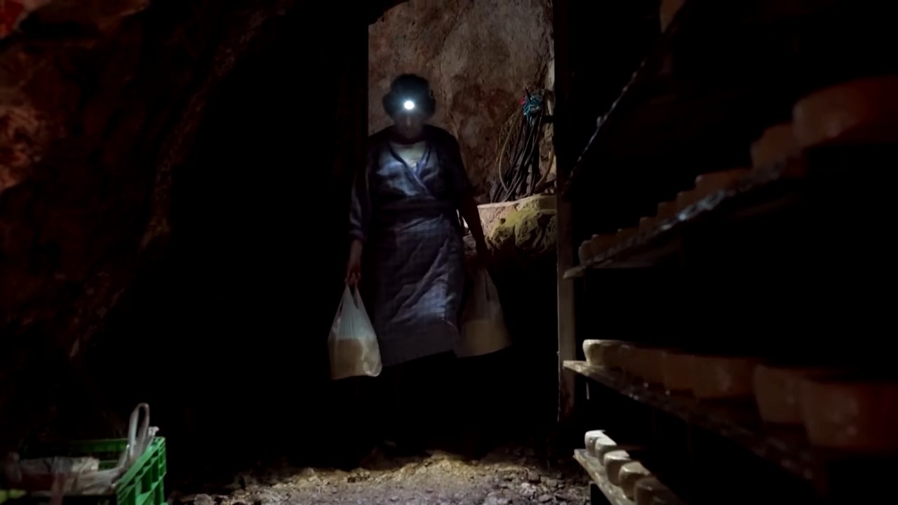 І показує, як перевертає та обтирає голівки сиру, що лежать на дерев'яних полицях у повній темряві. Саме завдяки унікальній мікрофлорі печер кабралес отримує свій гострий, пікантний смак і блакитний колір.