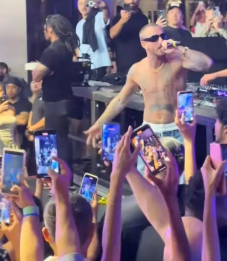 На відео з соціальних мереж можна побачити, як оголений до поясу татуйований чоловік у темних окулярах виконує хіти на сцені перед великим залом. Глядачі знімали все на телефони, бувши переконаними, що перед ними справжній Бібер.