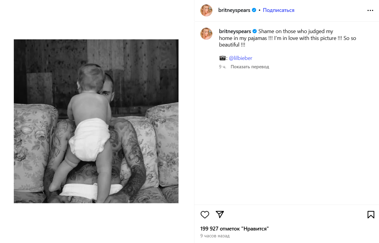"Ганьба тим, хто осуджував мій дім у піжамі!!! Я закохалася в цю фотографію!!! Вона така красива!!!" — написала артистка.