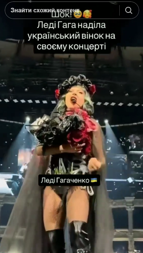 "Шок! Леді Гага наділа український вінок на своєму концерті. Леді Гагаченко", — написала користувачка соцмережі на відео.