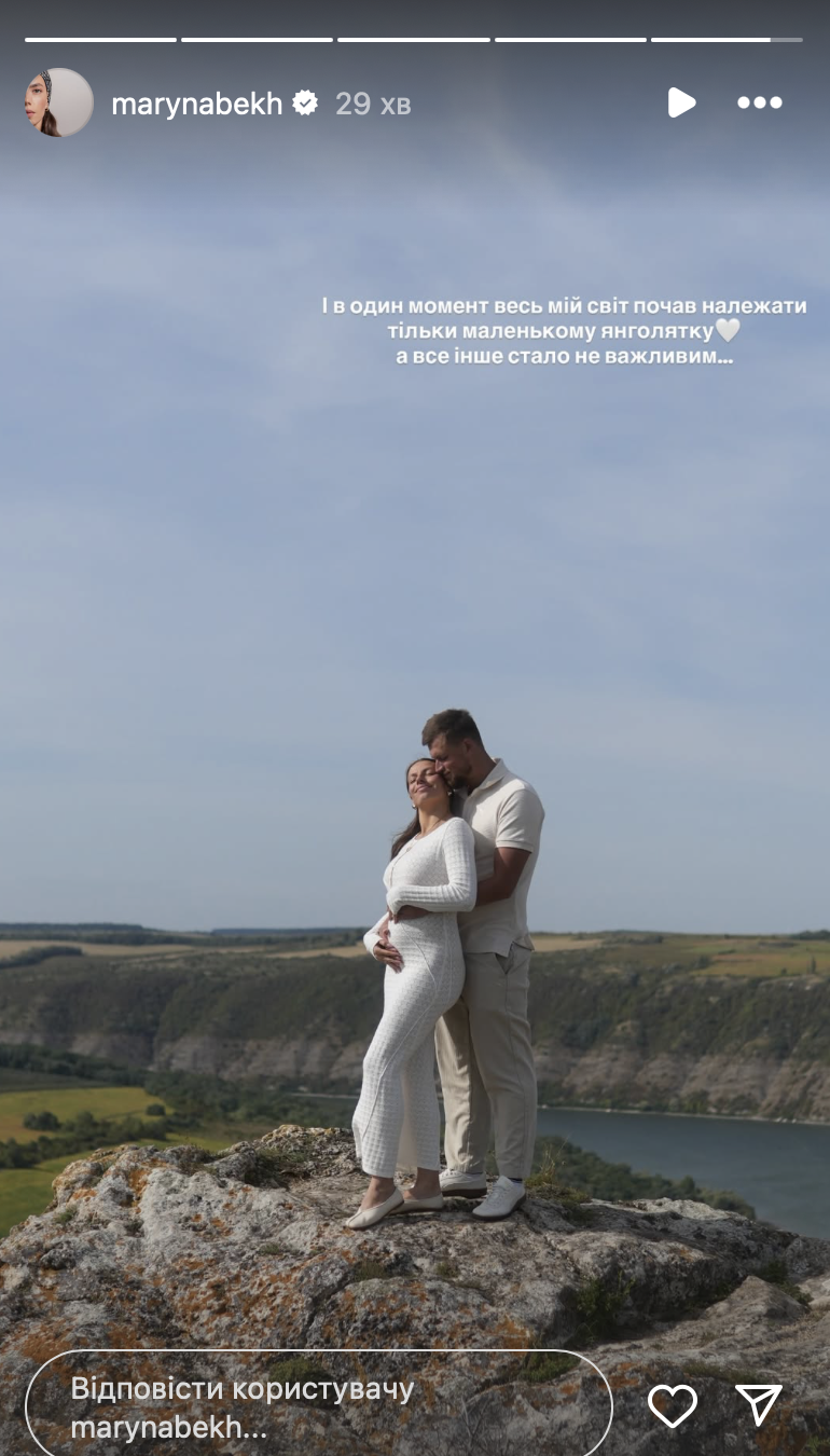 "1+1=3. Стільки сліз, лікарів і зусиль, але ми вірили і мріяли. Коли здалося, що весь світ зруйнований і в нашому житті не залишилося нічого прекрасного, ми через кілька днів дізнаємося про тебе. Цей шлях був важким, але ми з нетерпінням чекаємо на наше янголятко", — написала Марина.