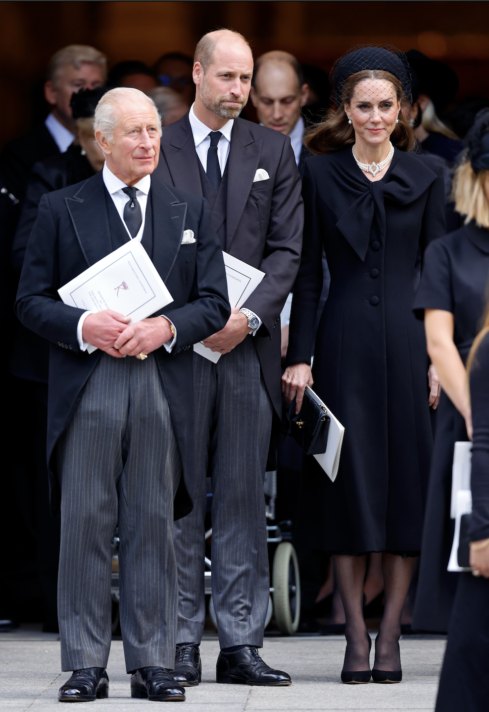 Король Чарльз, принц Вільям та Кейт Міддлтон на похороні