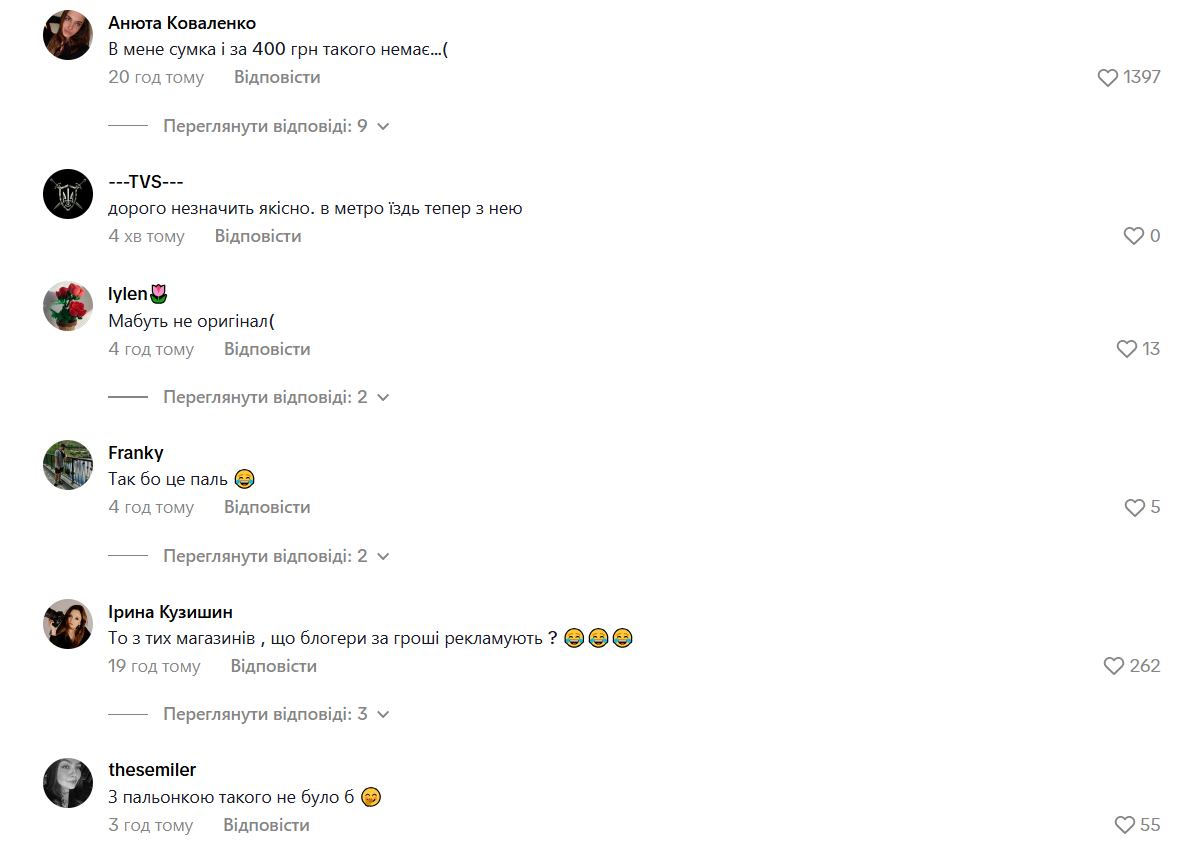 • "У мене сумка і за 400 грн такого немає";