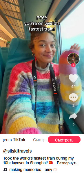 У Китаї туристка здійснила поїздку на самому швидкому потязі у світі. Вона поділилася враженнями у TikTok.