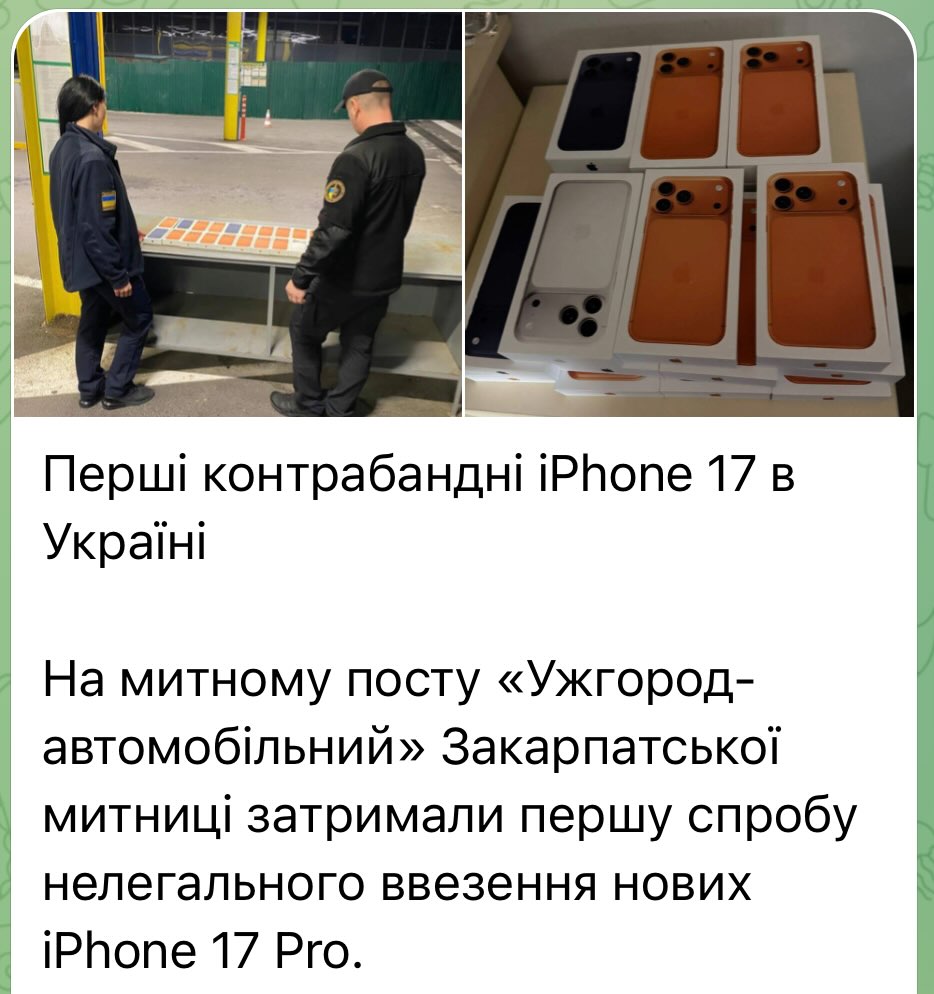 Нещодавно прикордонники запобігли незаконній спробі ввезення в Україну партії нових iPhone 17, які не пройшли належного митного оформлення. Майже одразу після цього блогери, серед яких Олег Машуковський, Стася Макєєва, Таня Самбурська, Олександр Заліско, Дмитро Варварук, Богдан Шелудяк (Буше) та Анна Трінчер, анонсували розіграш смартфонів.