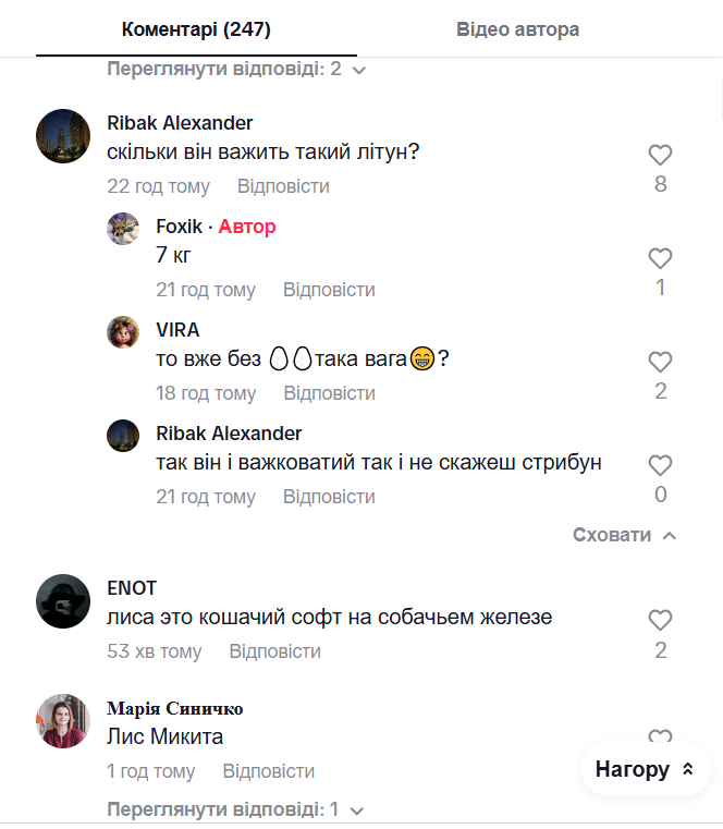 Господар у коментарях зауважив, що лис важить сім кілограмів. Відео знято в Хмельницькій області. Всього за добу воно зібрало майже 700 тисяч переглядів, безліч коментарів, репостів та інших реакцій.