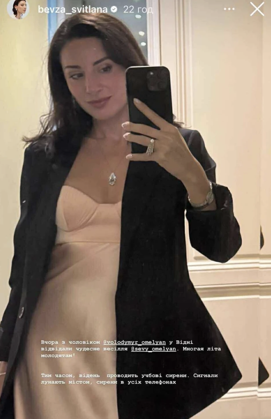 Зокрема, дружина колишнього міністра зізналася, що в Австрії наразі активно тестують сирени: "Вчора з чоловіком у Відні відвідали чудесне весілля Северина. Многая літа молодятам! Тим часом Відень проводить учбові сирени. Сигнали лунають містом, сирени в усіх телефонах".