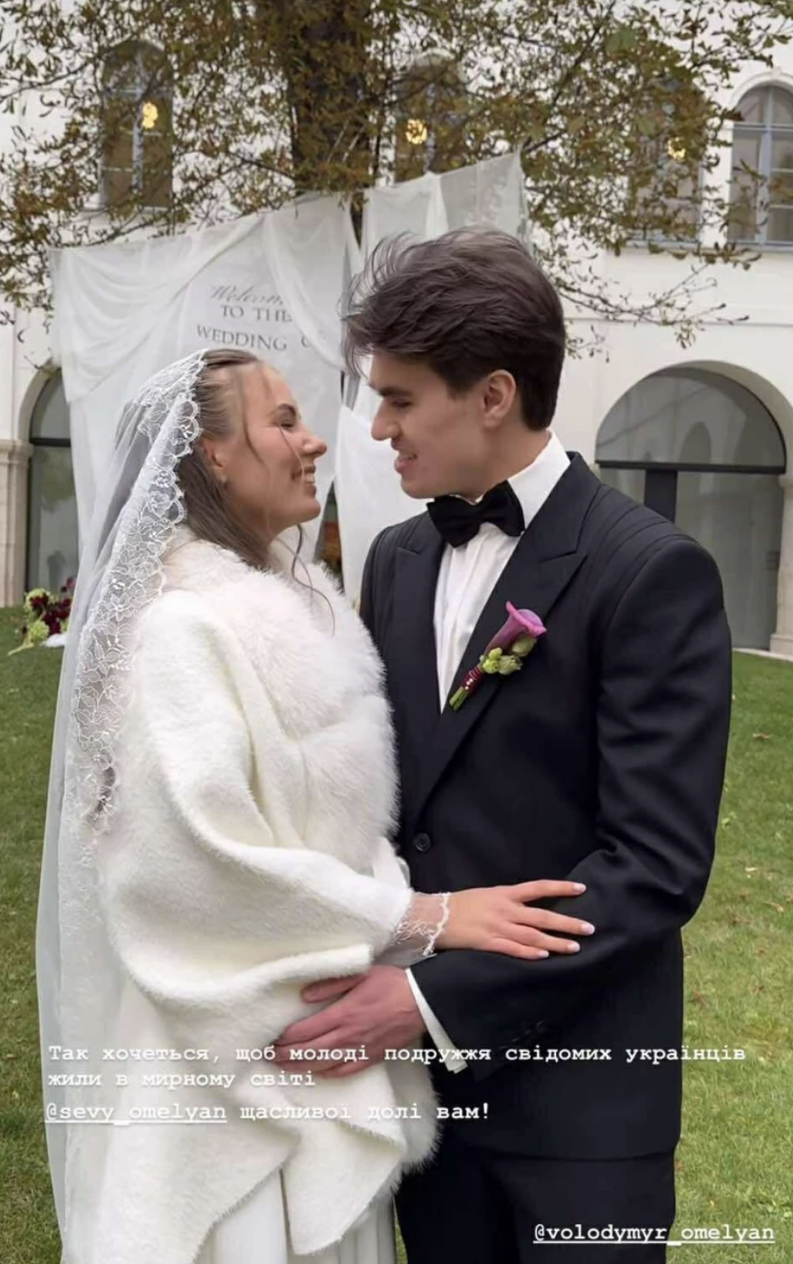 Кадрами з весілля поділилася дружина Омеляна-старшого, дизайнерка Світлана Бевза у своєму Instagram. Вона показала молодят з їхнього закордонного весілля, що відбулося у столиці Австрії, де навчався і наразі живе Северин.