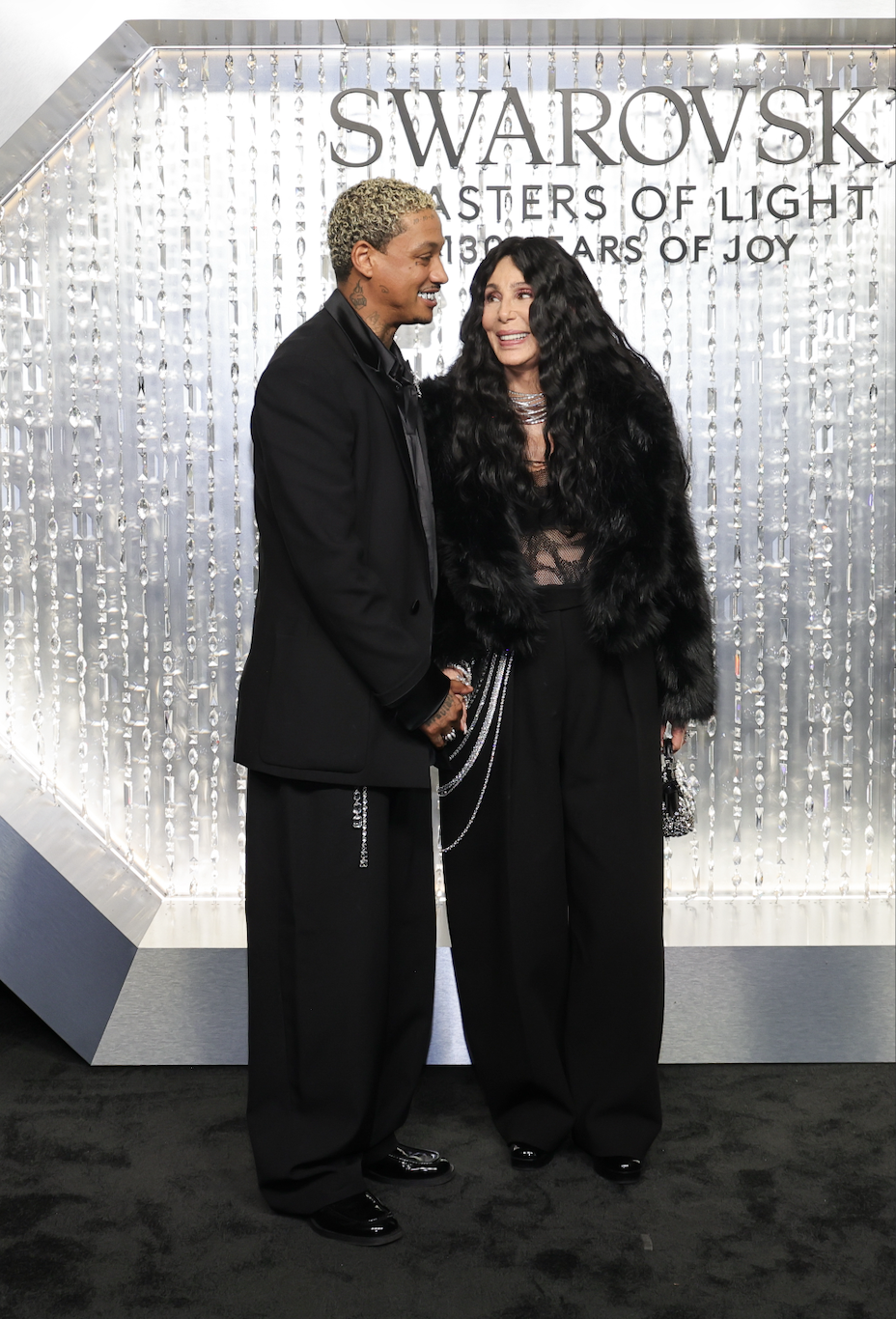 79-річна американська співачка Шер позувала на публіці зі своїм молодим хлопцем Александром Едвардсом, 39, на вечірньому святкуванні відкриття Swarovski Masters of Lighting у Лос-Анджелесі.