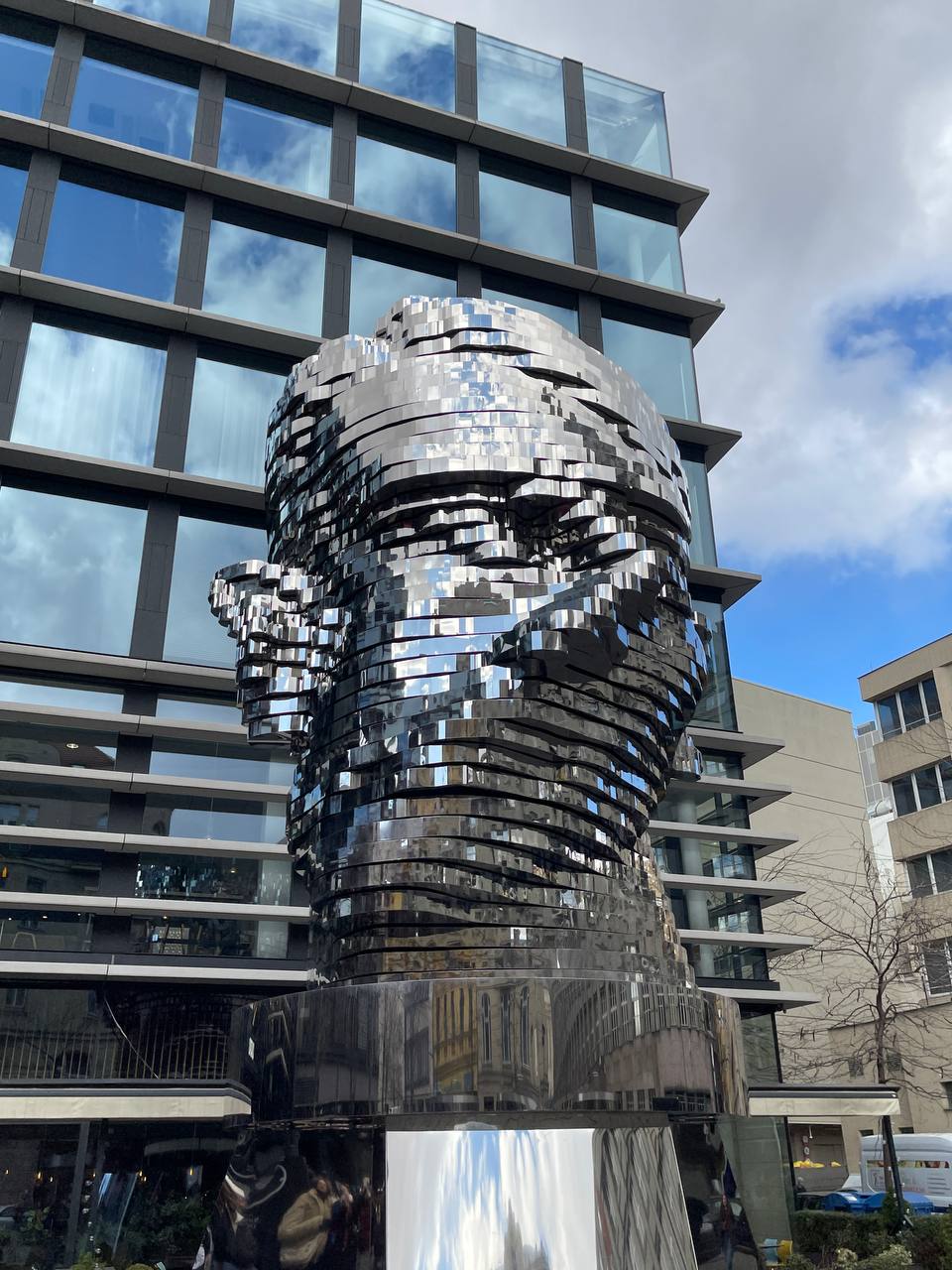 9. Quadrio — Rotating Head of Franz Kafka (Památník Franze Kafky / Head of Franz Kafka) — гігантська металева кінетична скульптура у вигляді голови Франца Кафки.