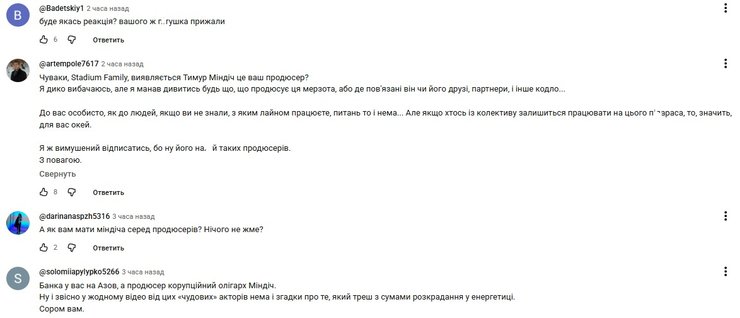 У коментарях багато глядачів висловили свою думку з приводу скандалу і припинення роботи, а деякі навіть заявили про відписку.