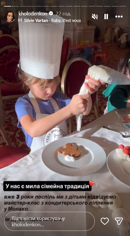 До цього родина жила за кордоном після початку повномасштабної війни. У Монако у них навіть з’явилася особлива традиція — відвідувати майстер-класи з кондитерського ліплення.