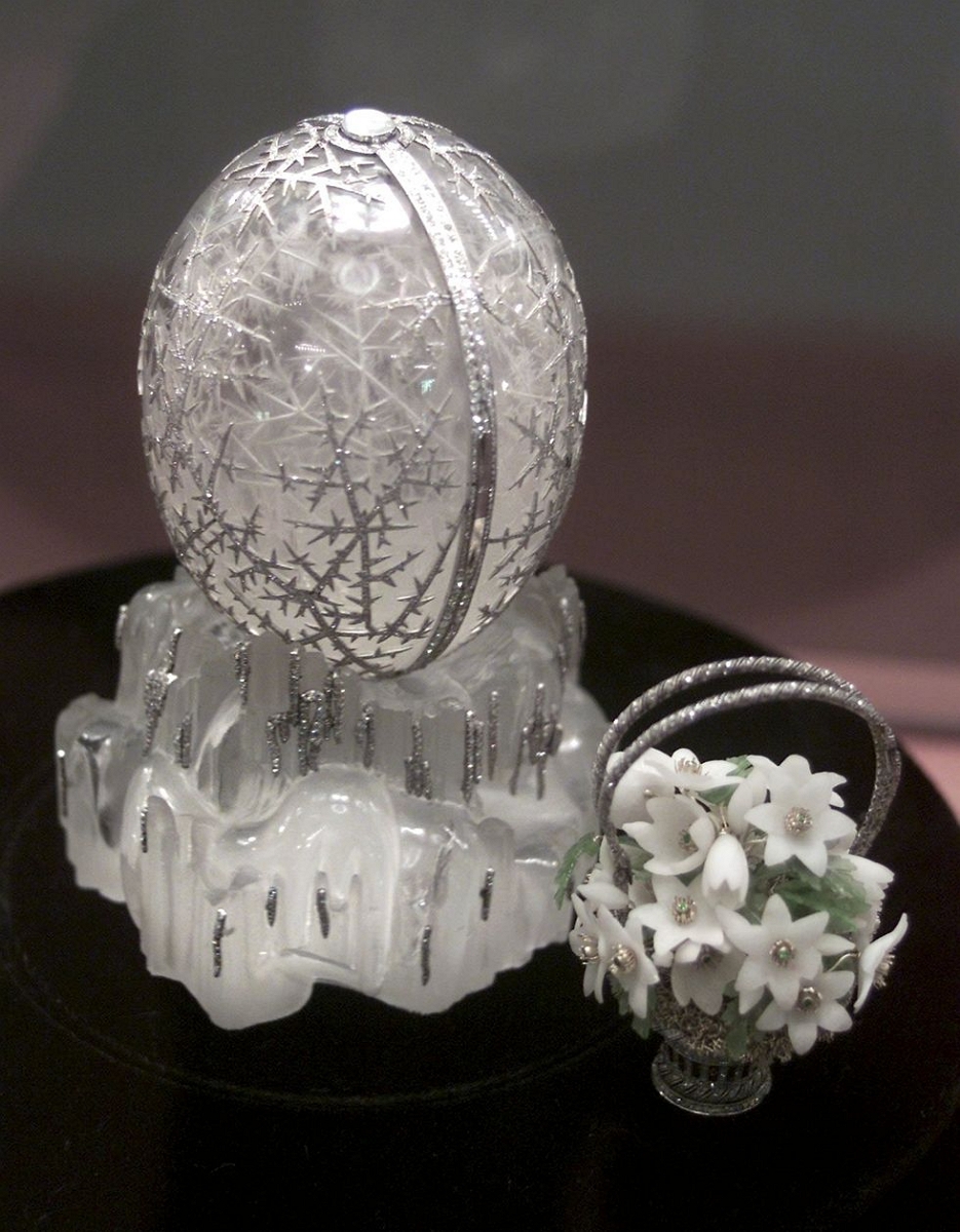 Яйце заввишки 10 см виготовлене з майстерно вирізьбленого гірського кришталю і вкрите витонченим візерунком у вигляді сніжинок, виконаним з платини та інкрустованим 4500 крихітними діамантами. Якщо його відкрити, то всередині буде сюрприз — букетик квітів з кварцу, який символізує весну.