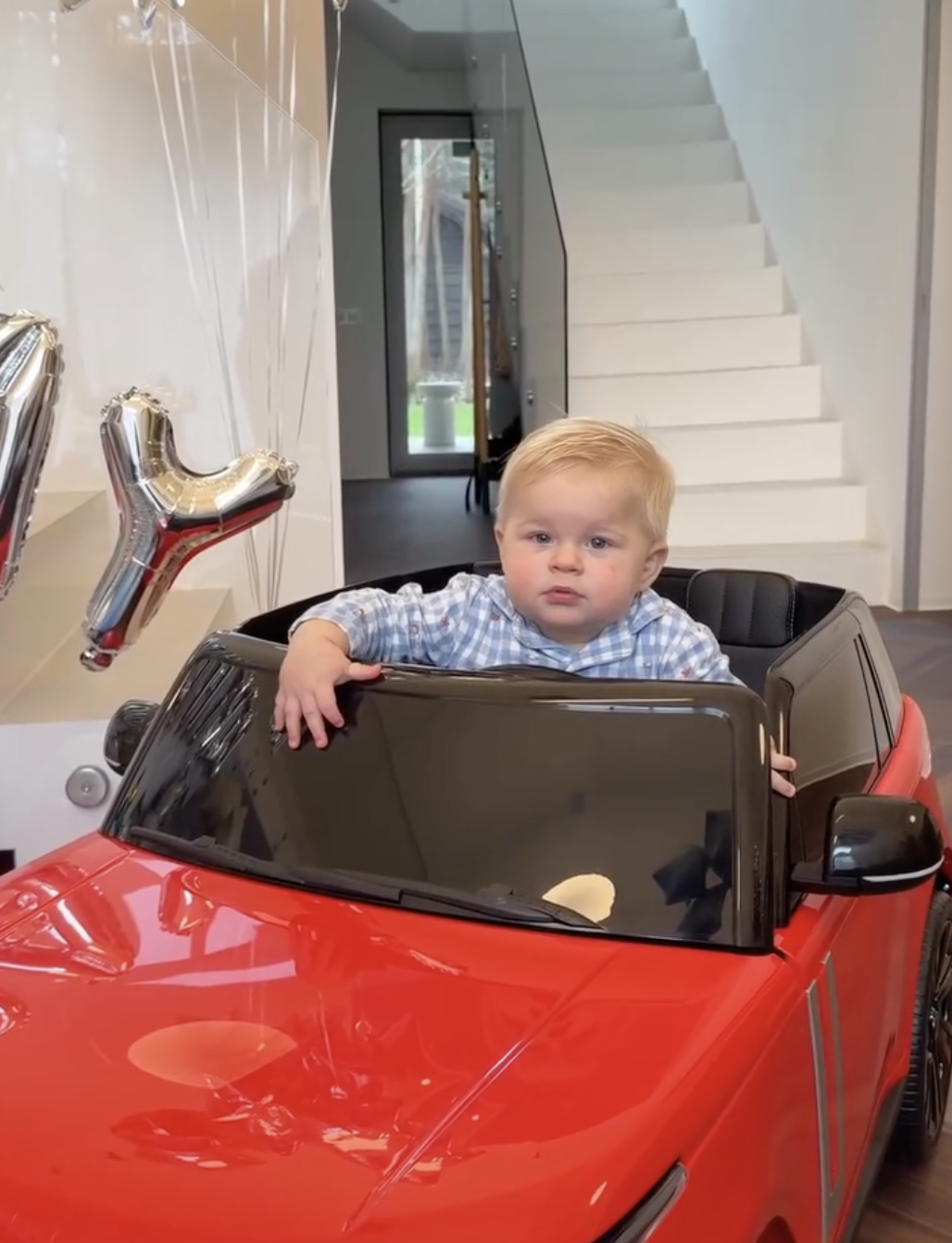 До дня народження батьки прикрасили оселю повітряними кульками й підготували подарунок — яскраве червоне дитяче авто.