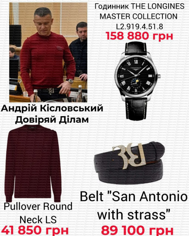 Зокрема, депутат Андрій Кісловський прийшов на засідання у ремені за 89 тисяч гривень та з годинником вартістю понад 158 тисяч гривень.