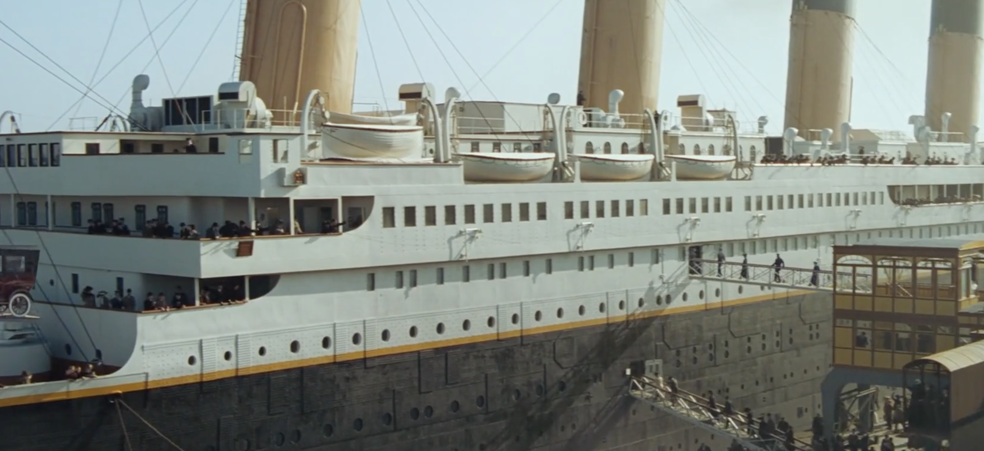• Для зйомок було побудовано грандіозний макет корабля майже в натуральну величину. Довжина фінальної моделі сягала 231 метра, тоді як реальний лайнер мав довжину 269 метрів.
