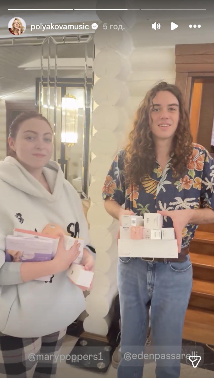 Щойно співачка побачила в руках зятя подарунки — сильно зраділа. Полякова-старша не стала показувати, що там було. Але, ймовірно, у коробках були косметичні засоби. За такий сюрприз знаменитість пообіцяла погодувати дітей.